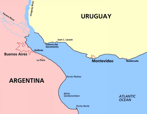 Buenos Aires is the largest port in South America. Rio de la Plata is a major river that separates Argentina from Uraguay. The river is 30 miles wide and leads to the Atlantic Ocean. The coastline is 3,100 miles.